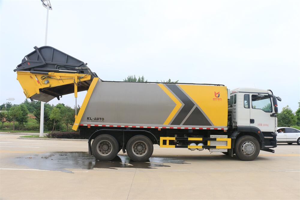 上裝配置:垃圾箱容積:20方,新款平面弧形廂體,廂體材料為武鋼優(yōu)質碳鋼,PLC一鍵操作**,手電一體操作模式,兩側雙電控,帶駕駛室內操作,底板支撐加強,雙向壓縮,開放式易清潔污水箱。壓縮式垃圾車采用機電液一體化技術,借助機、電、液聯(lián)合自動**系統(tǒng)、電腦**、手動操作系統(tǒng),通過填裝器和推鏟等專用裝置,實現(xiàn)垃圾倒入、壓碎或壓扁、強力裝填,把垃圾擠入車廂并壓實和推卸,污水全部進入污水廂,解決了垃圾運輸過程中的二次污染的問題。壓縮式垃圾車具有自動反復壓縮以及蠕動壓縮功能,壓縮比高、密封性好、裝載量大﹑操作方便、環(huán)保性好﹑整車利用功率高等優(yōu)點。作業(yè)自動化,垃圾收集方式簡便、高效。后翻轉機構選裝:1、掛塑料桶式翻轉機構;2、掛鐵桶式翻轉機構;3、擺臂式翻轉機構; 4、簸箕斗式翻轉機構。
