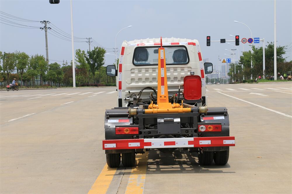 勾臂式垃圾車(車廂可卸式垃圾車)介紹: 車廂可卸式垃圾車又叫拉臂式垃圾車,是一種采用高新設(shè)計(jì)可伸縮的鉤臂,實(shí)現(xiàn)垃圾廂的二次吊裝,自吊上放下,可自行傾倒垃圾的環(huán)衛(wèi)設(shè)備。 拉臂式垃圾車結(jié)構(gòu)簡(jiǎn)單,操作穩(wěn)定方便,裝卸效率高,機(jī)械化程度高,節(jié)省人力。鉤臂垃圾車一車可帶多個(gè)垃圾廂,在裝卸的運(yùn)輸過(guò)程中可有效地避免二次污染。 拉臂垃圾車采用高新設(shè)計(jì)可擺動(dòng)的鉤臂,垃圾箱由框架、開(kāi)啟油缸、滑輪、后門和若干加強(qiáng)框架與鋼板焊接而成。調(diào)換貨廂快捷方便,貨廂上帶蓋(倒垃圾時(shí)可翻開(kāi)),鉤臂垃圾車?yán)鴰w可選用碳鋼、不銹鋼材質(zhì)、內(nèi)部采取環(huán)氧樹(shù)脂防腐處理,改裝部分與原車底盤為可分離式,維修方便且保持了原車的機(jī)動(dòng)性及行駛性能。