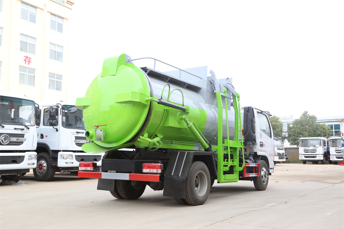 上裝配置:罐體容積6m3,配備120L/240L掛桶提升翻轉(zhuǎn)機(jī)構(gòu),液壓系統(tǒng),后蓋液壓鎖緊開啟,罐體可以舉升自卸,尾部帶自流閥;用于運(yùn)輸液態(tài)垃圾,其特點(diǎn)操作簡單,密封性好,無泄漏,無異味;可選裝固液分離功能,推板擠壓功能,常用于餐館的垃圾轉(zhuǎn)運(yùn)處理。