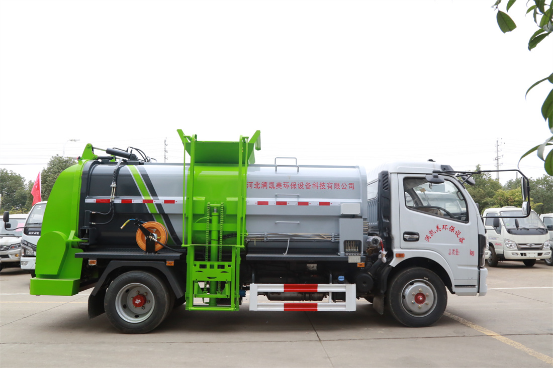 上裝配置:罐體容積8m3,配備120L/240L掛桶提升翻轉(zhuǎn)機(jī)構(gòu),液壓系統(tǒng),后蓋液壓鎖緊開(kāi)啟,罐體可以舉升自卸,尾部帶自流閥;用于運(yùn)輸液態(tài)垃圾,其特點(diǎn)操作簡(jiǎn)單,密封性好,無(wú)泄漏,無(wú)異味;可選裝固液分離功能,推板擠壓功能,常用于餐館的垃圾轉(zhuǎn)運(yùn)處理。