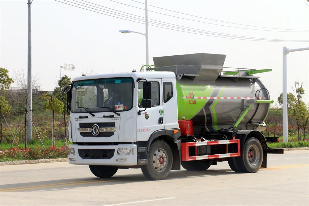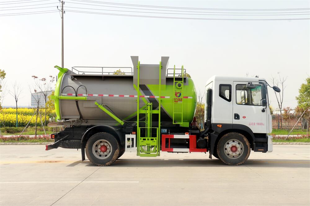 上裝配置:罐體容積10m3,配備120L/240L掛桶提升翻轉機構,液壓系統(tǒng),后蓋液壓鎖緊開啟,罐體可以舉升自卸,尾部帶自流閥;用于運輸液態(tài)垃圾,其特點操作簡單,密封性好,無泄漏,無異味;可選裝固液分離功能,推板擠壓功能,常用于餐館的垃圾轉運處理。