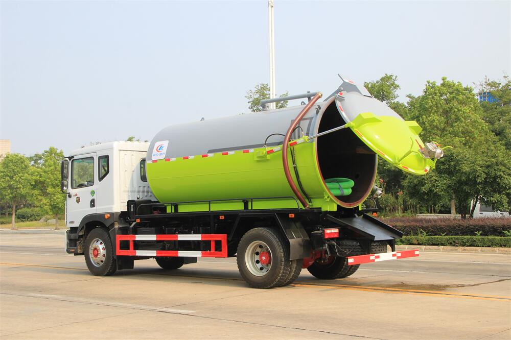 5.液壓舉升自卸功能,便于將各種污物傾倒干凈,后罐門可以液壓?jiǎn)?dòng)開啟,便于清理罐體內(nèi)的沉積物,凝固物及對(duì)罐體內(nèi)部進(jìn)行維修、保養(yǎng),液壓取力增強(qiáng)了系統(tǒng)的穩(wěn)定性。