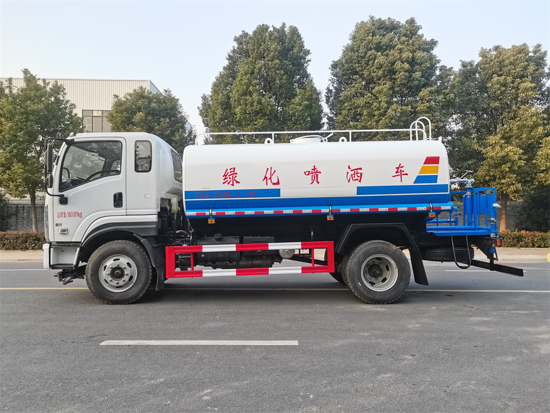 灑水車性能特點:前沖(噴)后灑,帶側(cè)噴,罐體后帶工作平臺,平臺上安裝綠化灑水炮,灑水炮可360旋轉(zhuǎn),可連續(xù)調(diào)成直沖狀、大雨、小雨、毛毛雨,帶安全護(hù)欄,配備全國質(zhì)量評比**名的杭州威龍大功率專用  灑水泵,泵可自吸自排,安裝過濾網(wǎng),帶消防接口,可通過消防栓進(jìn)水,帶自流閥,隨車選裝20米綠化卷盤,可噴灑農(nóng)藥。