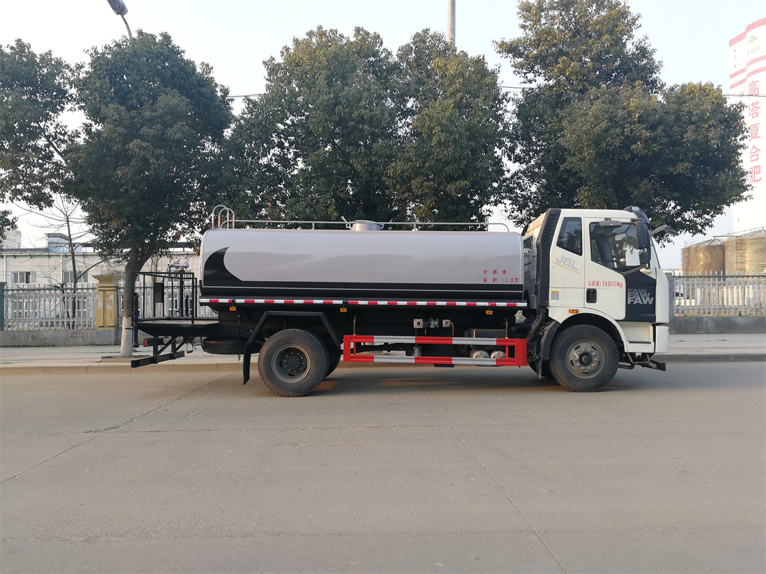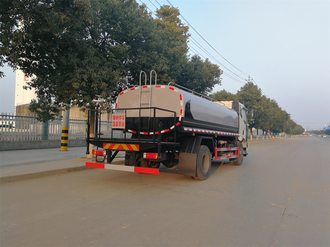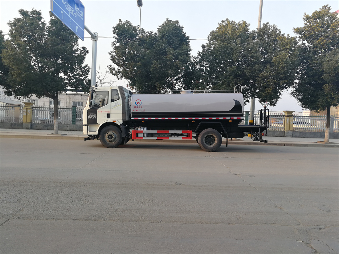 灑水車前裝有鴨形噴嘴或圓頭沖嘴,后面裝有圓柱開灑水噴嘴或蓮蓬頭噴嘴,后部有一工作平臺,裝配有水炮。后部還可裝8個噴嘴(選裝)。