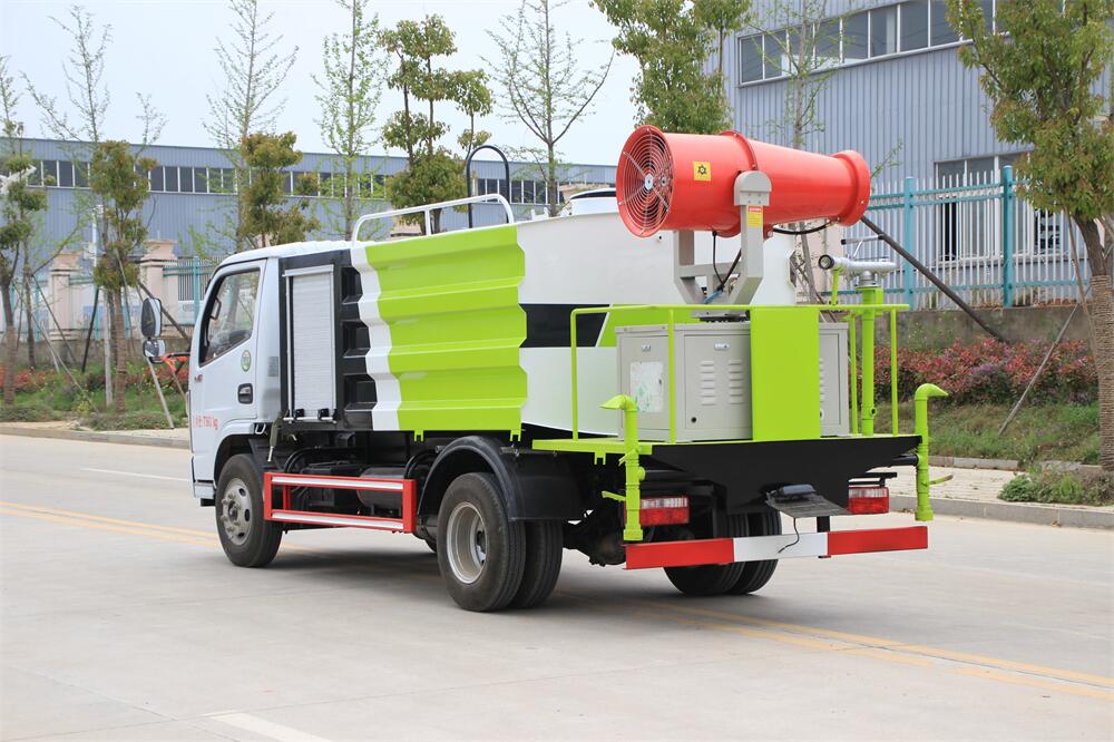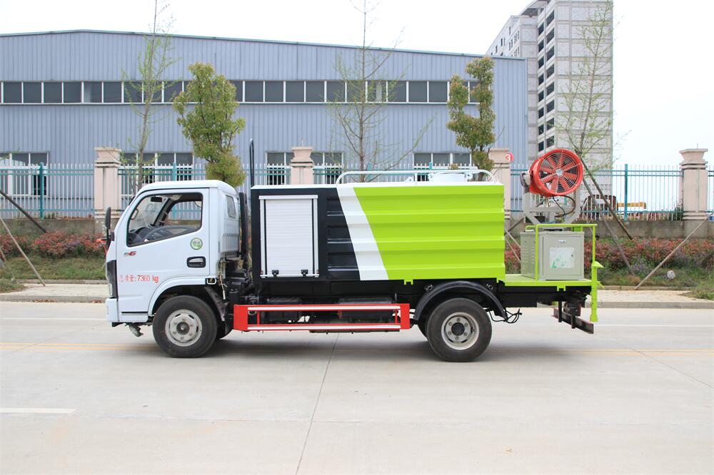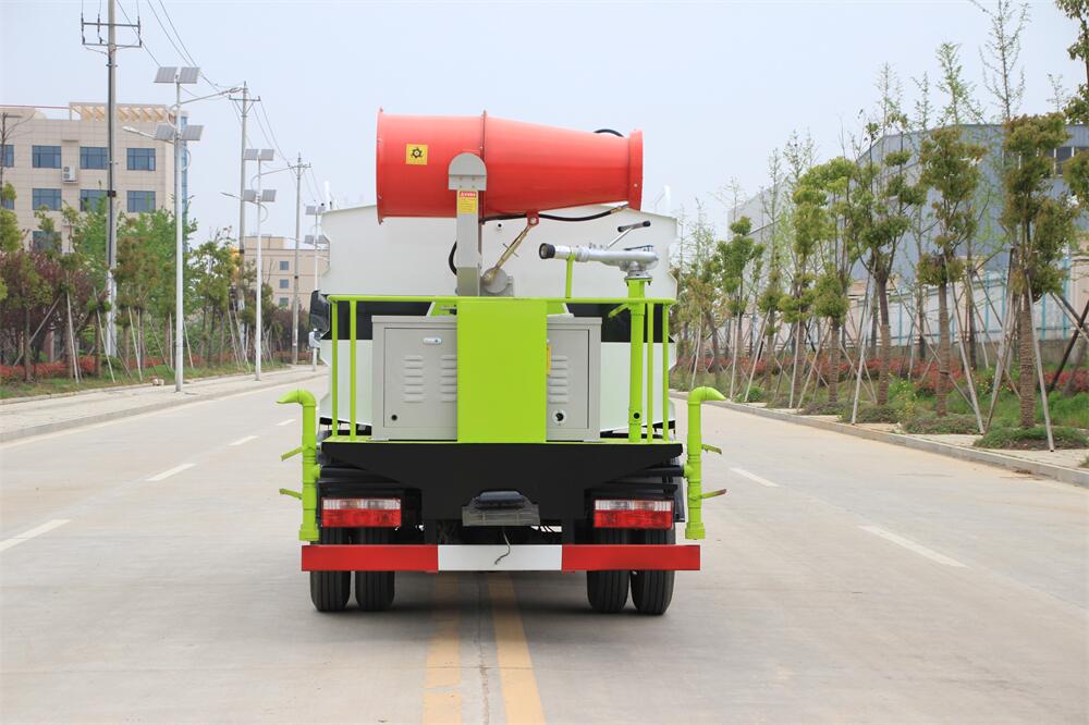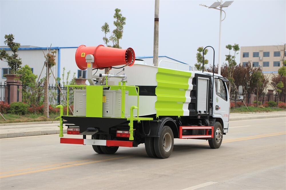 上裝配置:罐體容積為 5-7立方,選配風(fēng)送式霧炮機(jī)組射程30米、40米、50米、60米、80米、100米、120米霧炮,罐體鋼板為4mm碳鋼Q235材質(zhì),罐內(nèi)隔板具有防波作用,以減輕汽車行駛時(shí)罐體液體沖擊,罐體及整車外形尺寸按照公告。帶大功率專用灑水泵,泵可自吸自排,整車前沖、后灑、側(cè)噴、帶65消防接口,后平臺(tái)配CLW-50、CLW-60、CLW-80、CLW-100、CLW-120型風(fēng)送式霧炮機(jī)組;罐體前封頭配大功率柴油發(fā)電機(jī)組;前封頭帶水位計(jì),后平臺(tái)主管路帶1寸澆花接口,后爬梯。帶兩根輸水管及陰陽(yáng)端。罐體顏色:銀/灰/綠,罐體兩側(cè)噴“多功能抑塵車”字樣,貼反光標(biāo)示。