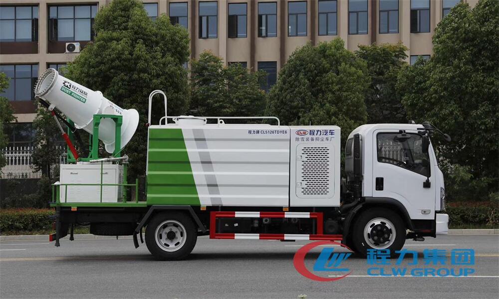 上裝配置:罐體容積為 8立方,選配風(fēng)送式霧炮機(jī)組射程30米、40米、50米、60米、80米、100米、120米霧炮,罐體鋼板為4mm碳鋼Q235材質(zhì),罐內(nèi)隔板具有防波作用,以減輕汽車行駛時(shí)罐體液體沖擊,罐體及整車外形尺寸按照公告。帶大功率專用灑水泵,泵可自吸自排,整車前沖、后灑、側(cè)噴、帶65消防接口,后平臺(tái)配CLW-50、CLW-60、CLW-80、CLW-100、CLW-120型風(fēng)送式霧炮機(jī)組;罐體前封頭配大功率柴油發(fā)電機(jī)組;前封頭帶水位計(jì),后平臺(tái)主管路帶1寸澆花接口,后爬梯。帶兩根輸水管及陰陽(yáng)端。罐體顏色:銀/灰/綠,罐體兩側(cè)噴“多功能抑塵車”字樣,貼反光標(biāo)示。