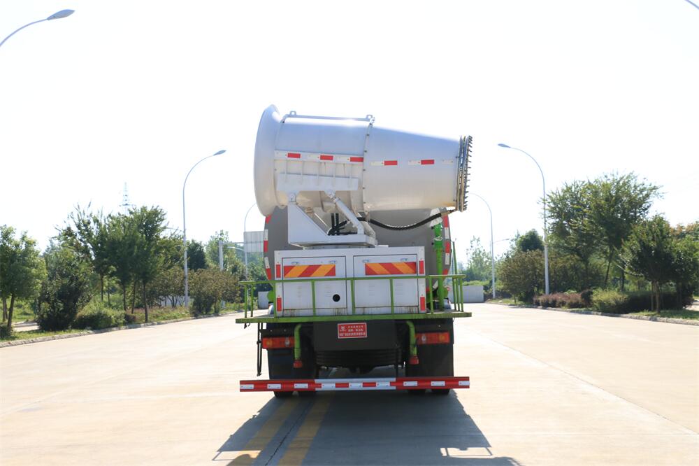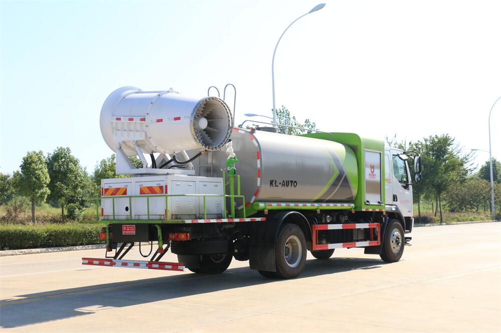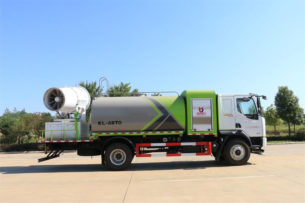 上裝配置:罐體容積為 12立方,選配風(fēng)送式霧炮機(jī)組射程30米、40米、50米、60米、80米、100米、120米霧炮,罐體鋼板為4mm碳鋼Q235材質(zhì),罐內(nèi)隔板具有防波作用,以減輕汽車行駛時(shí)罐體液體沖擊,罐體及整車外形尺寸按照公告。帶大功率專用灑水泵,泵可自吸自排,整車前沖、后灑、側(cè)噴、帶65消防接口,后平臺配CLW-50、CLW-60、CLW-80、CLW-100、CLW-120型風(fēng)送式霧炮機(jī)組;罐體前封頭配大功率柴油發(fā)電機(jī)組;前封頭帶水位計(jì),后平臺主管路帶1寸澆花接口,后爬梯。帶兩根輸水管及陰陽端。罐體顏色:銀/灰/綠,罐體兩側(cè)噴“多功能抑塵車”字樣,貼反光標(biāo)示。