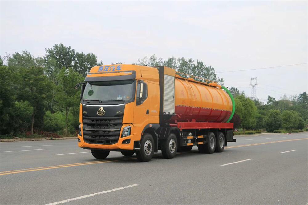 上裝配置:罐體容積為 30 立方(水污可自由 分配),罐體 8mm 厚,封頭 8mm 厚,水罐、污 罐可互通,用 100 球閥**開(kāi)關(guān);清洗部份采 用雙耀高壓泵,壓力 20Mpa,流量 330L/min, 配 80 米直徑 25 高壓管帶液壓卷盤(pán);吸污部份 采用濰柴420馬力副發(fā)動(dòng)機(jī)帶山東SK-42水循 環(huán)泵(副發(fā)自帶),吸污罐帶舉升,尾部加裝 一個(gè) 600mm 快開(kāi),罐體后尾部一個(gè) DN150 不銹 鋼排污口,一個(gè) DN150 不銹鋼偷排,兩個(gè) DN100 吸污球閥帶出口盤(pán),一個(gè)視污窗,兩根 10m 吸 污管,一套陰陽(yáng)端,壓力表,防溢閥,箭頭燈, 工具箱,淋管裝置,高壓泵帶氣吹水。配一個(gè) 9 公斤水雷噴頭,另帶一個(gè) 80 公分手持洗車 噴頭。