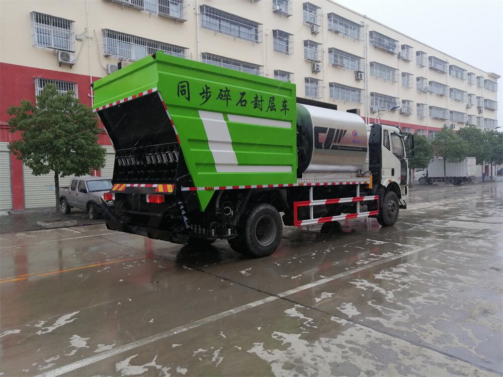 4、后雙橋同步碎石封層車完全采用電氣**,自動(dòng)化程度高,,能**的計(jì)算出設(shè)備在施工過程中瀝青噴灑量和石屑撒布量的多少;