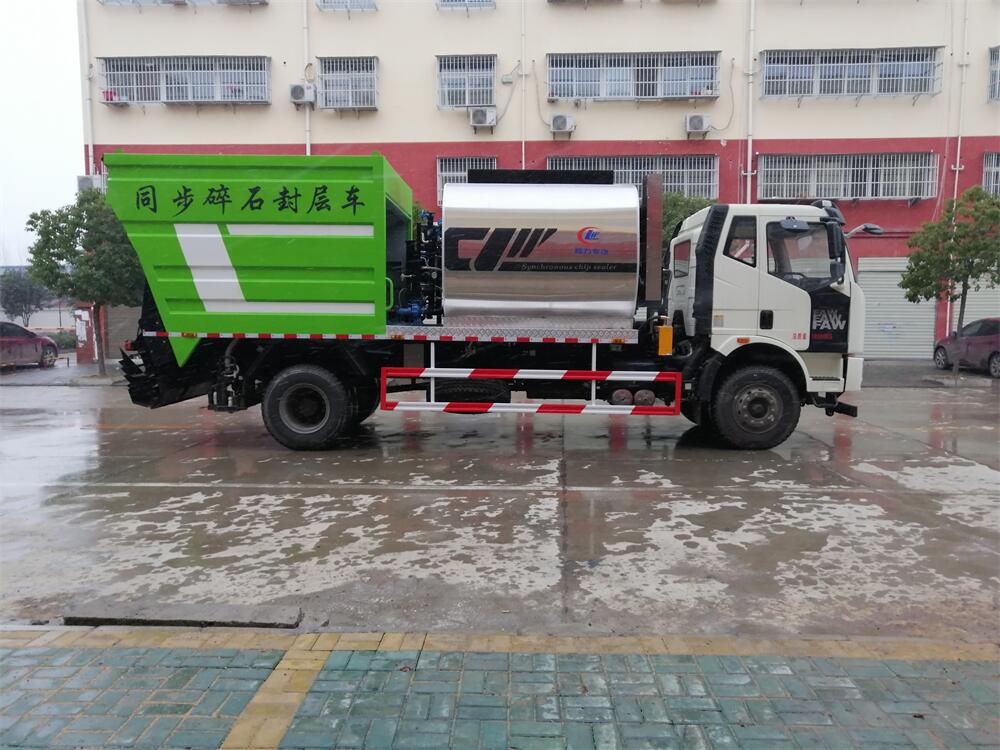 解放單橋同步碎石封層車工作實(shí)拍圖片