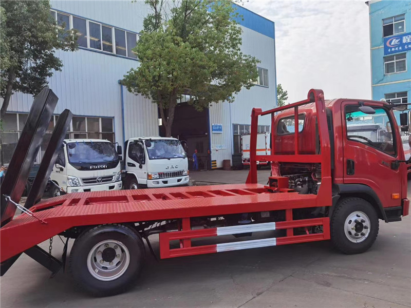 上裝采用五毫米花紋鋼板,100*100方鋼做橫梁,電動卷揚,簡易爬梯,可拉12噸以下挖機。